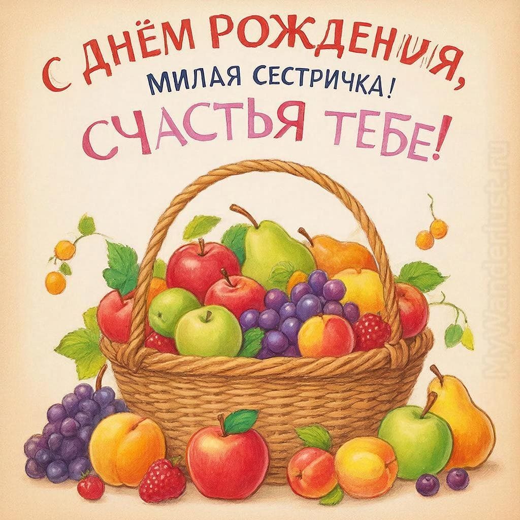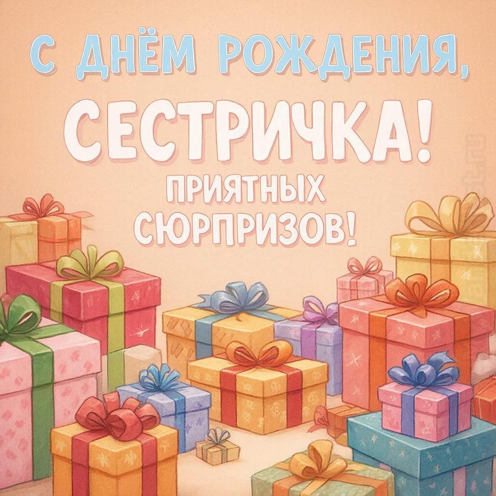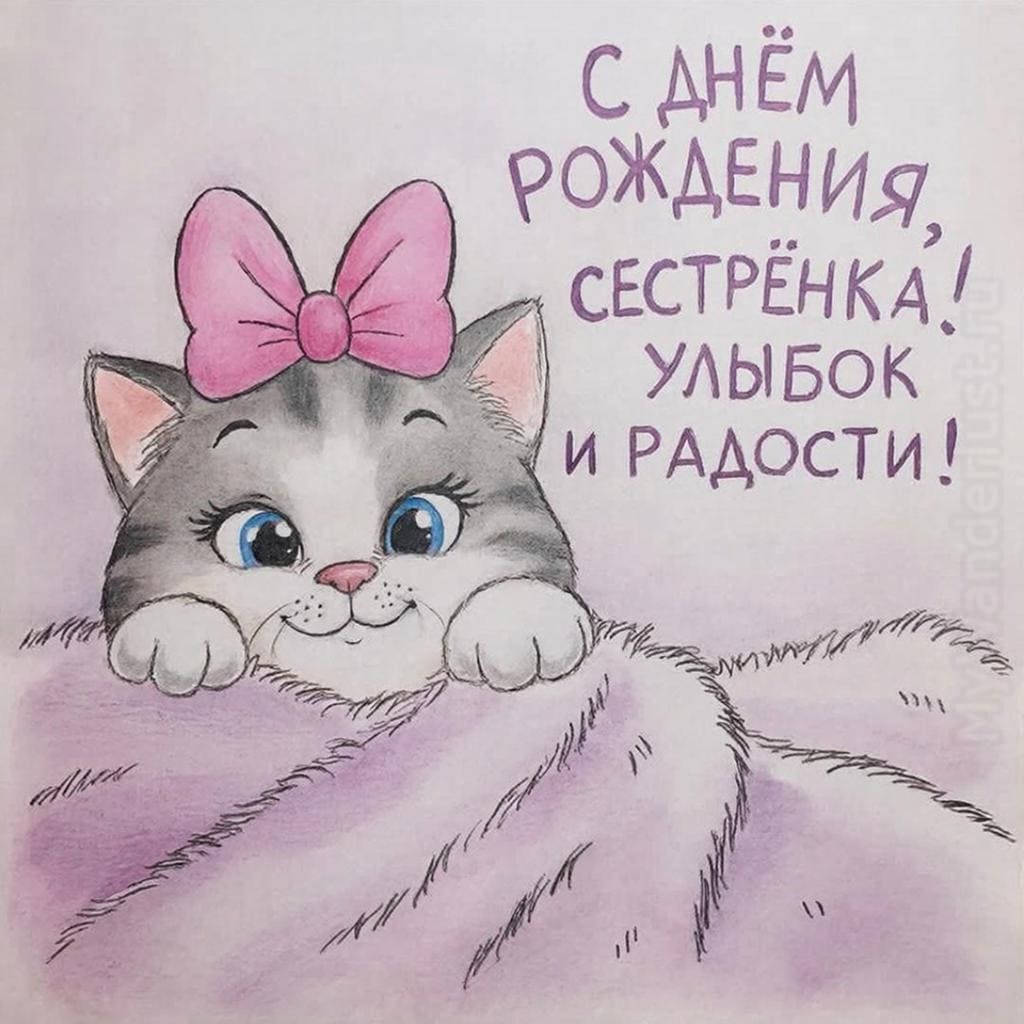 Сестра — это подруга, данная самой судьбой, человек, который знает тебя с детства, поддерживает в самые трудные моменты и разделяет самые яркие радости. Поздравить ее с днем рождения — это возможность сказать «спасибо» за эту бесценную связь, за общие секреты, смех и поддержку. Наша коллекция открыток создана для того, чтобы помочь вам выразить всю вашу любовь, нежность и теплоту сестринских отношений. Здесь вы найдете и современные, веселые дизайны, и романтичные, душевные картинки, которые идеально подойдут для вашей единственной и неповторимой сестры.